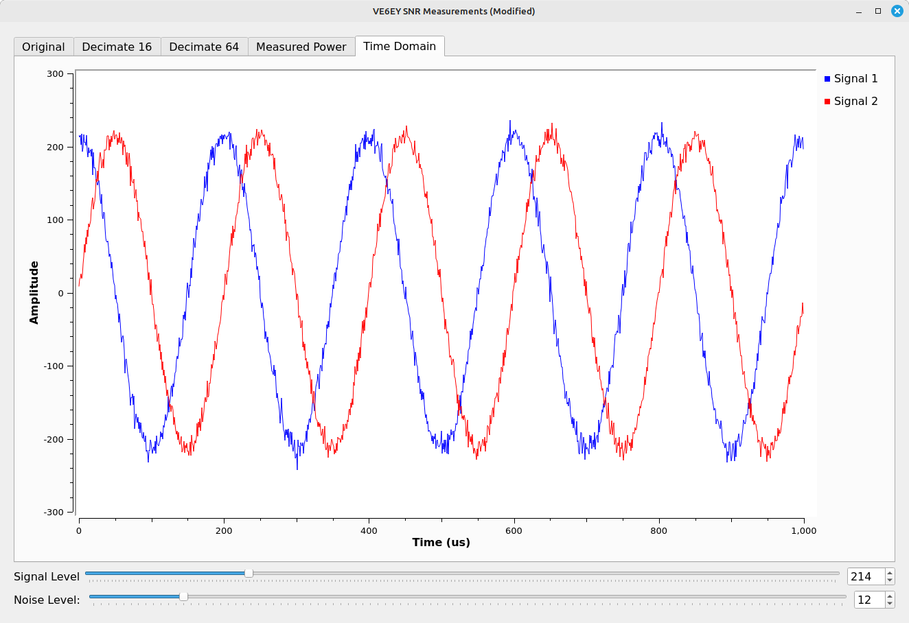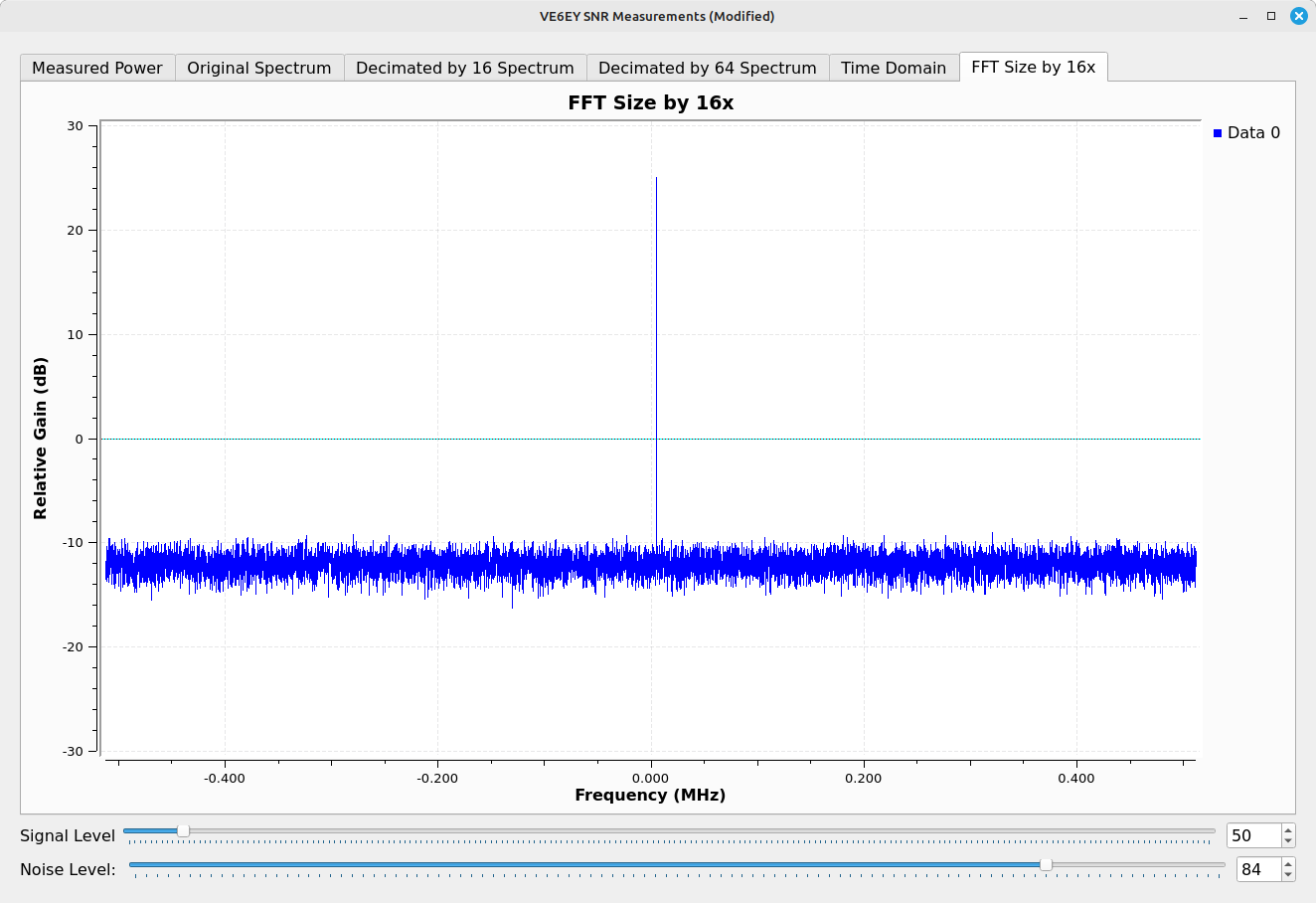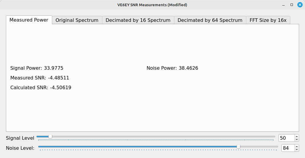 To start, he's using only frequency sinks for his power measurements. Measuring power spectrally has a lot of pitfalls and "gotchas". Things such as the scalloping loss and processing gain of the window. (NOTE: This processing gain is different than what VE6EY is talking about with improving SNR.) Measuring coherent vs noncoherent signals. It's all a pain. As an example of something he should have done, instead of using the Blackman-harris window for his spectral display, he should have used the rectangular window. Regardless, its just MUCH easier to measure power in the time domain. It works the same for both coherent (aka "signals") and noncoherent (aka "noise") energy, and it's straightforward.
